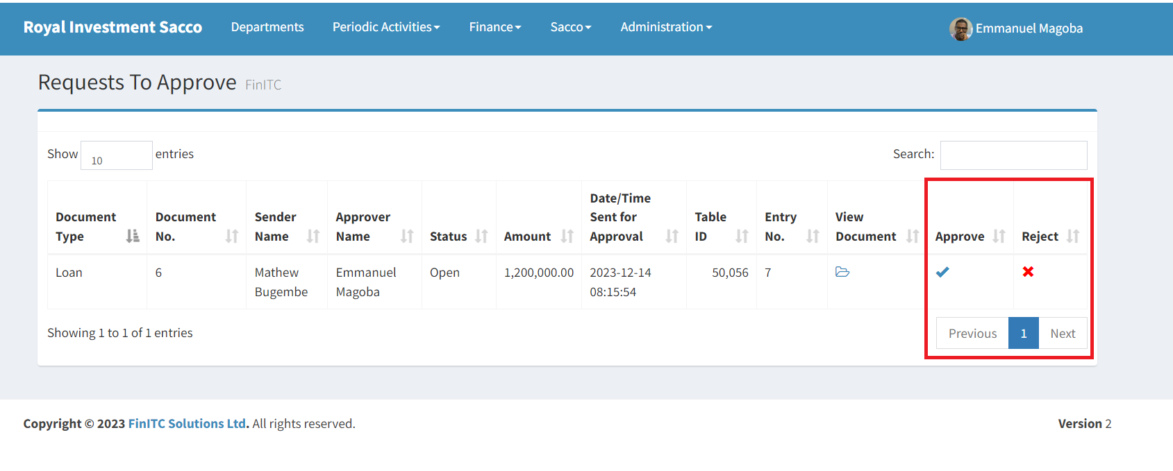 As an administrator, you have access to the tile for requests to Approve on your home page. Click more info under the Request To Approve tile to access the list of Request to Approve. You can decide to either Approve or Reject the Request. Please note while rejecting a request, the system prompts the user to enter a reject comment.